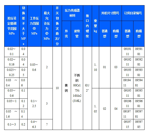 簡(jiǎn)介: 540/7DD差壓開(kāi)關(guān)采用波紋管式的傳感器,可用于無(wú)腐蝕性的氣體和液體介質(zhì)。540/7DD差壓控制器的設(shè)定值可調(diào),調(diào)節(jié)范圍0.02~3MPa,其工作壓力范圍0.05~6.3MPa。 主要技術(shù)性能: 規(guī)格: 切換差不可調(diào)...