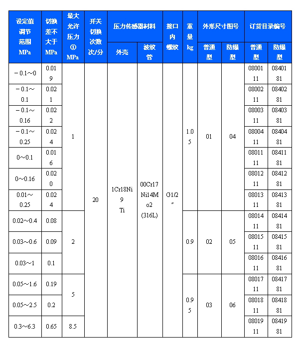 511/7D防爆壓力開關(guān)使用溫度范圍大,可用于腐蝕性介質(zhì)。