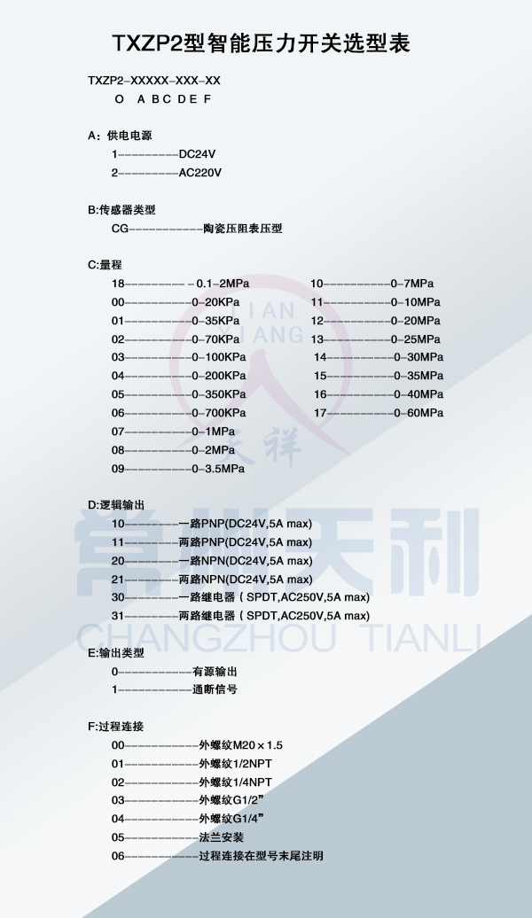 TXZP2智能壓力開關(guān)基本參數(shù)