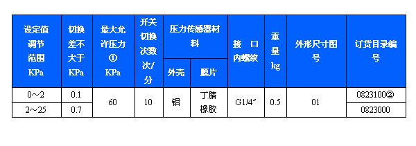 500/11D壓力開關(guān)采用膜片式傳感器,可用于空氣、煤氣等中性氣體和水、液壓油、潤滑油、輕燃油等液體介質(zhì)。500/11D壓力開關(guān)的設(shè)定值可調(diào),調(diào)節(jié)范圍0~25KPa。