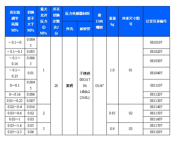 502/7DK壓力開關可用于真空。有特殊要求的,可另行設計調節(jié)范圍-0.1~6.3MPa。